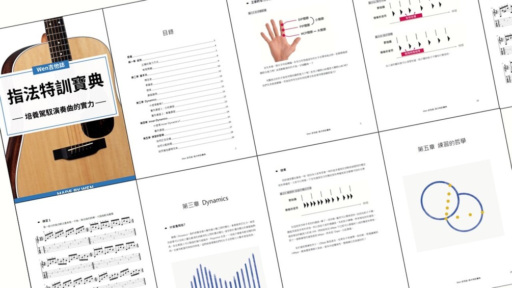 如果你才剛開始學吉他,對Fingerstyle有點興趣,只要你看得懂吉他六線譜,那這本書絕對適合你,內容循序漸進,不會有練不下去的狀況發生!