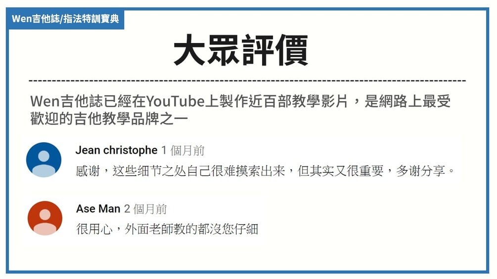 Wen吉他誌已經在YouTube上製作近百部教學影片,是網路上最受歡迎的吉他教學品牌之一